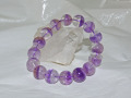 ファントムとは水晶が成長する過程において、気泡や鉱物などの内包を繰り返すことによってピラミッド型の三角の山を水晶の中に形成したもので、山入水晶、とも呼ばれています。こちらのようにアメジストにファントムが内包することは珍しいため、希少価値の高いブレスレットです。サイズは13ミリ玉が16粒と21cm位なので、内径(手首サイズ)は18cm位の方にピッタリです。大きくは出来ませんが小さくすることは出来ます。