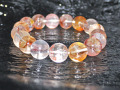 水晶の中にヘマタイトとカルサイトが内包した珍しい石のブレスレットが入荷しました。サイズは12ミリ玉で、内径(手首サイズ)は17cm位の方にピッタリです。大きくは出来ませんが小さくすることは出来ます。小さくした場合、外した玉もお付けします。