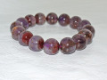 アメジストの中にルチルが内包した珍しい石が入荷しました。サイズは13ミリ玉で、内径(手首サイズ)は17cm位の方にピッタリです。大きくは出来ませんが小さくすることは出来ます。小さくした場合、外した玉もお付けします。