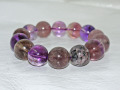 スーパーセブンのブレスレットが入荷しました。サイズは18ミリ玉で、内径(手首サイズ)は19cm位の方にピッタリです。大きくは出来ませんが小さくすることは出来ます。小さくした場合、外した玉もお付けします。