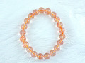 希少なストロベリークォーツの中でも珍しいオレンジストロベリークオーツが入荷しました。既に採掘の鉱山が閉鎖していますので今後は希少度も増すことでしょう。透明度の高い水晶の中にサンストーンにも似たキラキラの結晶が入っていて大変綺麗です。ビーズサイズは9ミリ玉でブレスレットサイズが19cmなので、手首が16cm位の方にピッタリです。大きくは出来ませんが小さくすることは出来ますのでサイズを選択してください。小さくした場合、外した玉もお付けします。