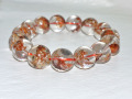 珍しいカルサイトインクオーツのブレスレットです。サイズは15ミリ玉で、内径(手首サイズ)は18cm位の方にピッタリです。大きくは出来ませんが小さくすることは出来ます。小さくした場合、外した玉もお付けします。