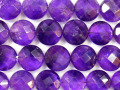 アメジスト(紫水晶)のボタン型のビーズが入荷しました。ボタン型の両表面にカットが入っています。ひと粒あたりがインパクトあり大き目のビーズなのでアクセサリーのアクセントにおすすめです。サイズは直径23ミリ位の円形で100円硬貨位です。厚み12ミリ位で穴は縦方向に貫通しています。ひと粒あたりが約10グラムあるので100円硬貨2個分位ですね。量は1連(約38cm)に18個です。長時間日光にさらされると、紫外線の影響で色あせてしまうため、直射日光を避けて保管してください。