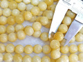 アラゴナイトは珊瑚や貝殻と同じ炭酸カルシウムから出来ている石といわれ、色も無色~緑まで様々ですがイエローのアラゴナイトがよく知られています。霰(あられ)状になって産出されることから、和名で「霰石」とも呼ばれます。アラゴナイトは柔らかめの石で傷つきやすいので、扱いに注意してください。