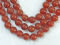 カーネリアンは和名で赤瑪瑙(あかめのう)と言います。天然の色味のマルチカラータイプと瑪瑙を人工的に加熱処理し成分を反応させて赤(赤茶色)くしたタイプとあり、こちらは人工的に加熱処理したタイプです。瑪瑙は大半が人工処理した物が主流となっており、赤瑪瑙というとこの加熱処理した物のほうがポピュラーです。加熱処理の色は染色処理の色に比べ鮮やかさは低いですが色落ちがしにくいのが特徴なので、極端に長期間紫外線に当てたりしない限りほぼ色は変わりません。
