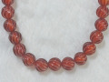 カーネリアンは和名で赤瑪瑙(あかめのう)と言います。天然の色味のマルチカラータイプと瑪瑙を人工的に加熱処理し成分を反応させて赤(赤茶色)くしたタイプとあり、こちらは人工的に加熱処理したタイプです。瑪瑙は大半が人工処理した物が主流となっており、赤瑪瑙というとこの加熱処理した物のほうがポピュラーです。加熱処理の色は染色処理の色に比べ鮮やかさは低いですが色落ちがしにくいのが特徴なので、極端に長期間紫外線に当てたりしない限りほぼ色は変わりません。斜めにねじったような彫刻がしてあります。