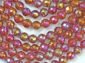 カーネリアンオーラはカーネリアンに人工的に金属を蒸着させたことで、独特の金属光沢が特徴のコーティングアゲートです。金属コーティングの事を色の特徴からオーラコーティングとも言うことから、その石の名前を「元の石の名前+オーラ」という呼び方がされます。コーティングが落ちることはほとんどありませんが、使用による小傷から艶が落ちる事はあります。ミラーカットという名はミラーボールのような細かいカットであることからきており、他に128面カットや多面カットなどとも言われるカットです。