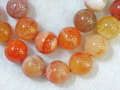 カーネリアンは和名で赤瑪瑙(あかめのう)と言います。天然の色味のマルチカラータイプと瑪瑙を人工的に加熱処理し成分を反応させて赤(赤茶色)くしたタイプとあり、こちらは天然の色味のマルチカラータイプです。マルチカラータイプは画像の通り全体的にオレンジ系のミックスカラーで、赤茶・橙・黄・白などカーネリアンの様々な色部分が混ざっています。そのため、粒売りは出来ませんので了承下さい。極端に長期間紫外線に当てたりしない限りほぼ色は変わりません。