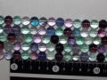 フローライトは色のバリエーションが豊富で、緑・白・青・紫・黄などが入り混じったり、縞模様になったりしたものがあります。紫外線に当てた時の輝きが蛍の光のようであることから、和名で「蛍石」といいます。硬度が低くて傷つきやすく、紫外線や強い熱にも弱く、衝撃を与えると割れてしまうことがありますから、扱いには注意してくさい。