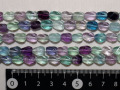 フローライトは色のバリエーションが豊富で、緑・白・青・紫・黄などが入り混じったり、縞模様になったりしたものがあります。紫外線に当てた時の輝きが蛍の光のようであることから、和名で「蛍石」といいます。硬度が低くて傷つきやすく、紫外線や強い熱にも弱く、衝撃を与えると割れてしまうことがありますから、扱いには注意してくさい。長方体ビーズをねじり、中央を膨らませた感じの形です。