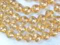 ゴールデンオーラは水晶に人工的に金を蒸着させたことで、独特の金属光沢が特徴のコーティング水晶です。コーティング加工は基本的にアクアオーラと同じですが、アクアオーラより低温にすることで金色となり、その色味からゴールデンオーラという名前になりました。コーティングが落ちることはほとんどありませんが、使用による小傷から艶が落ちる事はあります。ミラーカットという名はミラーボールのような細かいカットであることからきており、他に128面カットや多面カットなどとも言われるカットです。