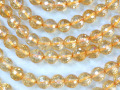 ゴールデンオーラは水晶に人工的に金を蒸着させたことで、独特の金属光沢が特徴のコーティング水晶です。コーティング加工は基本的にアクアオーラと同じですが、アクアオーラより低温にすることで金色となり、その色味からゴールデンオーラという名前になりました。コーティングが落ちることはほとんどありませんが、使用による小傷から艶が落ちる事はあります。ミラーカットという名はミラーボールのような細かいカットであることからきており、他に128面カットや多面カットなどとも言われるカットです。
