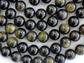オブシディアンは別名「黒曜石(こくようせき)」と言われ、溶岩が急速に冷却したことで出来る天然ガラスの一種です。オブシィデアンは黒い石ですが、こちらのゴールデンオブシィデアンは微細な気泡が含まれているため、光の当たる角度によりそれが光り輝いて一部金色のように見えるものです。