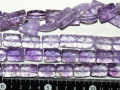 ラベンダーアメジストは名前の通り、通常のアメジストよりも淡い優しいラベンダーのような色をしたものをいいます。 冷静さを高め、真実を見抜き、悪いものに騙されず精神的な不調和を解消し、隠された能力を引き出す。心身ともに健康になるように導く上に、癒し効果絶大といわれます。また降りかかる災いを回避するよう導くともいわれます。長方形型ビーズがカットされてるため、キラキラしてとても奇麗です。