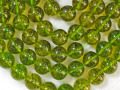 一見ペリドットにそっくりなオリーブクリスタルは、ペリドットに似せて水晶をオリーブカラーに染めた石です。普通に使用する分には色落ちしませんが、紫外線の影響で色あせる事があるので使用しない時はポーチや引き出しの中に保管するのがお勧めです。ペリドットは元々の原石が小さいために約6ミリより大きな粒だと高価になるため、その代用にもよく用いられます。