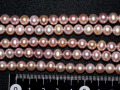 イケチョウ貝やカラス貝といった淡水生の貝の中に出来る真珠を淡水パール(淡水真珠)と言います。淡水パールは養殖ですが特徴として、ほとんど真円には育たずライス型やドロップ型などの様々な形に育ち、色も白・ピンク・紫など様々です。近年淡水パールは、その美しさと安価からビーズアクセサリーに多く使われポピュラーなものとなってきてます。硬度は低く酸にも弱いので、衝撃に注意し汗がついたら拭き取って保管してください。形はライス型です。