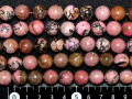ロードナイトは赤と黒のコンビネーションが特徴で、薔薇の花のような石であることから、和名で薔薇輝石とも呼ばれ人気の高いパワーストーンです。マグネシウムを多く含み淡紅色~濃紅色の石で、鉄の含まれる量により褐色を帯び、マンガンの含有量により黒い斑点や筋を持ちます。酸や薬品、また強い衝撃にも弱いので注意して扱ってください。