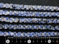 濃い青~薄い青~白が斑文状になった半透明から不透明のガラス光沢を持つ石です。成分はソーダ(ナトリウム)と白いカルサイトを含むため、ソーダライトと名付けられました。水や紫外線には比較的強いです。鉄アレイの球の部分がハート型になったものが重なったイメージです。