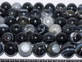 瑪瑙の一種で縞模様から削りだされます。縞瑪瑙の天然の模様を巧みにいかし、彫刻研磨することで「目(眼)」を生み出し、その目玉模様が、天(神様)の目と呼ばれることから名付けられました。色も茶・白・黒・灰とあり、それぞれの組み合わさった模様からなり、黒が多く入ったビーズや灰が多く入ったビーズなどさまざまです。天眼石は天の目・神の目と言われることから、真実を見極める目を持ち、悪い気や悪霊・邪悪なものを寄せ付けない魔除け石とされています。