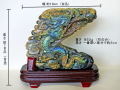 ラブラドライトの彫刻置物で龍(台付)が入荷しました。ラブラドライト特有の幻想的な光彩(ラブラドレッセンス)は見る角度や光の量により様々に見られますが、こちらは周りがイエロー系で龍の部分がブルー系の光彩が出ている印象です。ラブラドライトは黒っぽく光彩の出にくい物もありますが、こちらは背面の一部を除く全体的に綺麗な光彩が見られます。水・紫外線に強いので、日差しが当たっても大丈夫です。石は汚れたら水洗いして下さい。石を持つ際は持ちやすい形ですが、一点に力が加わらないよう両手で持ってください。
