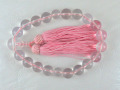 材質:マダガスカル産のローズクオーツ(紅水晶)14mm玉。親玉・二点もマダガスカル産のローズクオーツ。