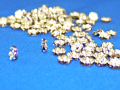 パワーストーンアクセサリー作りのアレンジ、玉数の調節、バリエーションの幅を広げたいという場合にお勧めなのがロンデルです。●素材・・・真鍮にロジウムメッキ●サイズ・・・約6ミリ×3ミリ●画像2に写ってるビーズは左半分が10ミリ玉、右半分が8ミリ玉で、このロンデルを挟んであります。仕上がりの参考になさってください。◆お得な100個セット売りも賜っております。