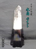 ブラジル産の水晶ポイントが入荷しました。日本製の専用木製台にはLED電球内蔵で、暗闇での観賞はまた格別です。石の重さは1.98kg。高さは約23cmです。台の高さは18cmです。